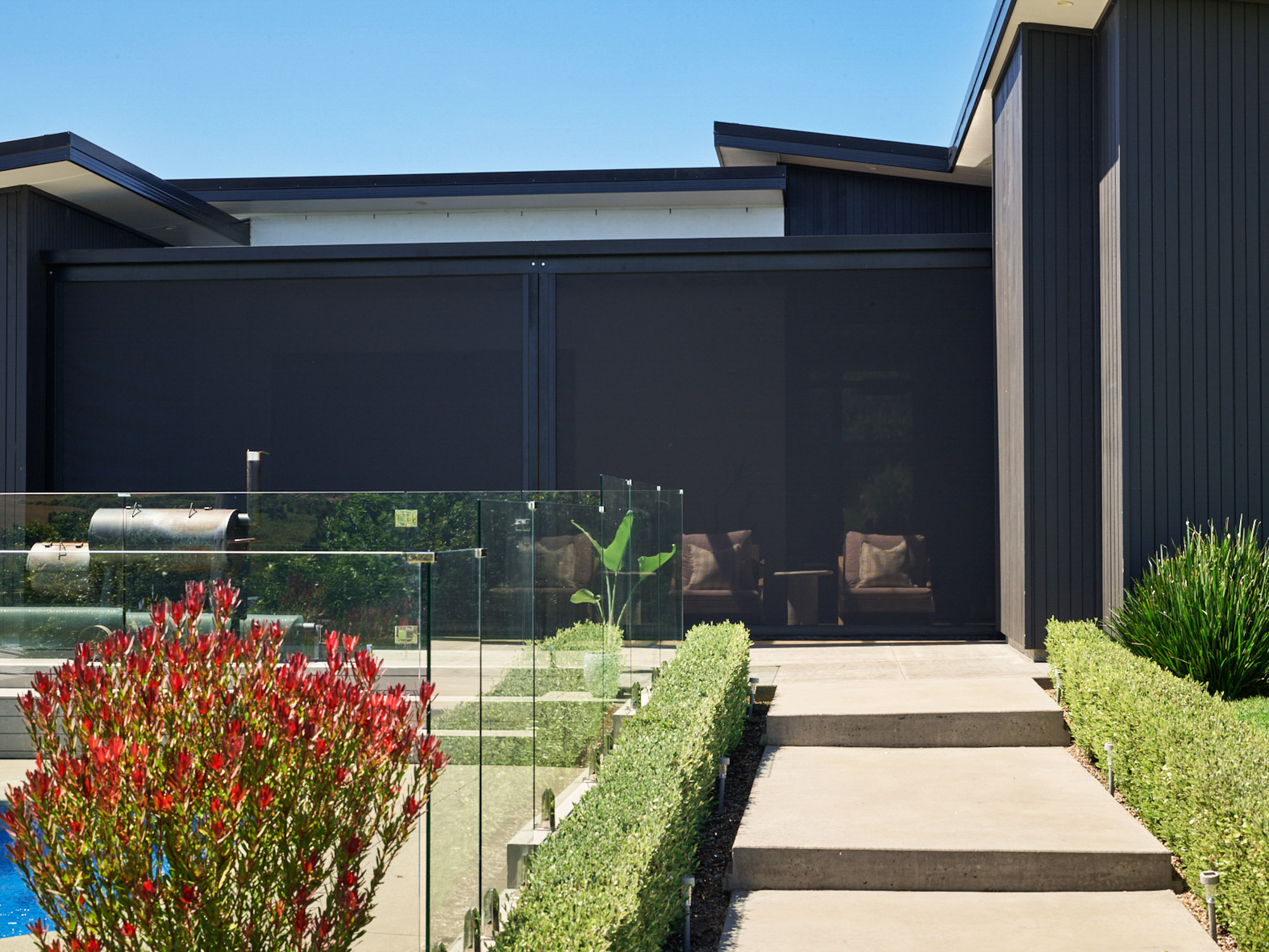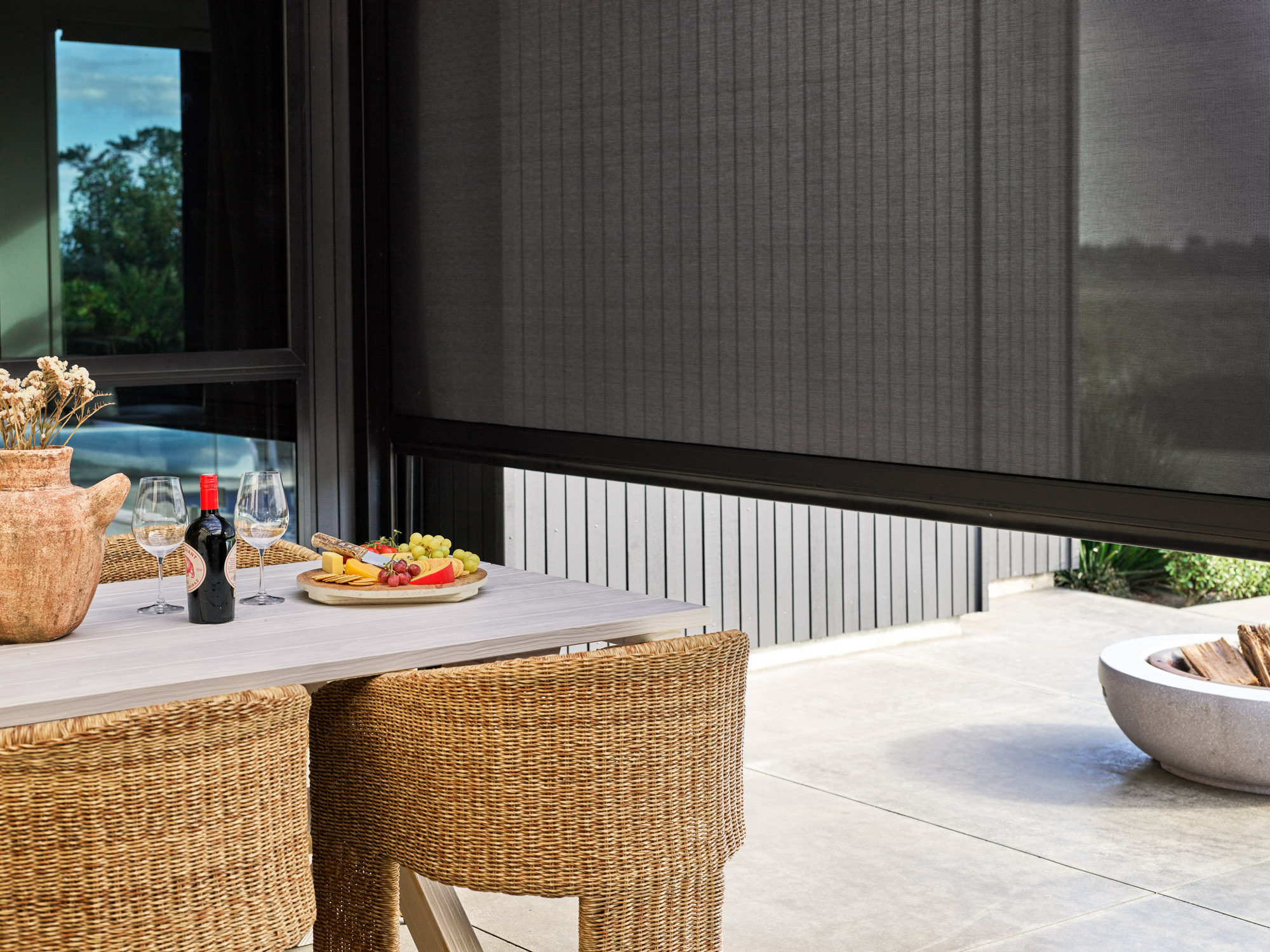Specially designed for alfresco entertaining areas such as pergolas, verandahs and balconies, Quatro exterior shades offer privacy and protection from the sun, breeze, rain and insects all year round.