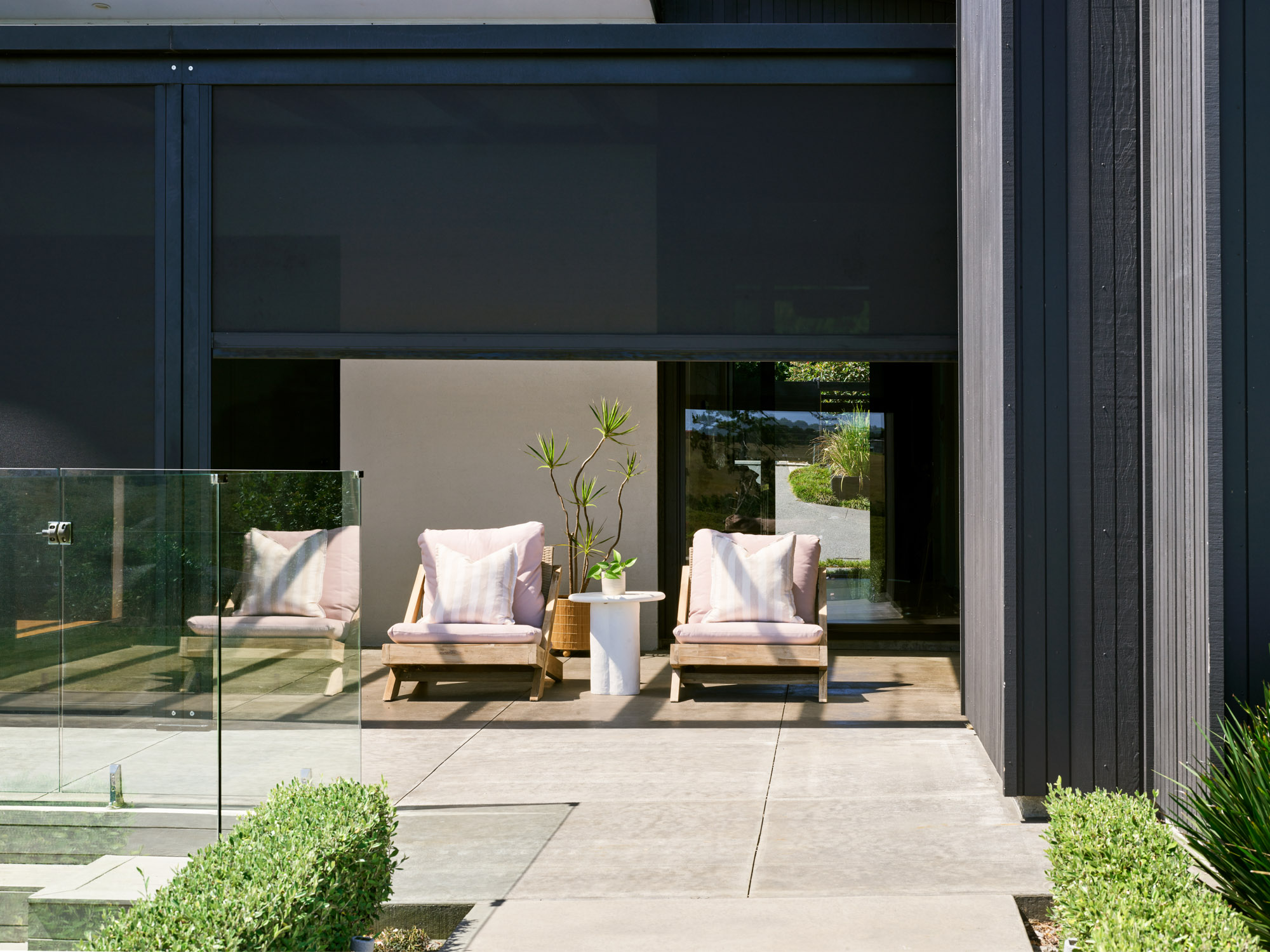 - Simplistic nature allows for open exterior lounges that quickly transform into beautiful shaded getaways