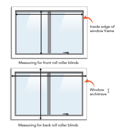 - Measure outside edge of the window architrave. There’s no need to take any deductions for back roll blinds.