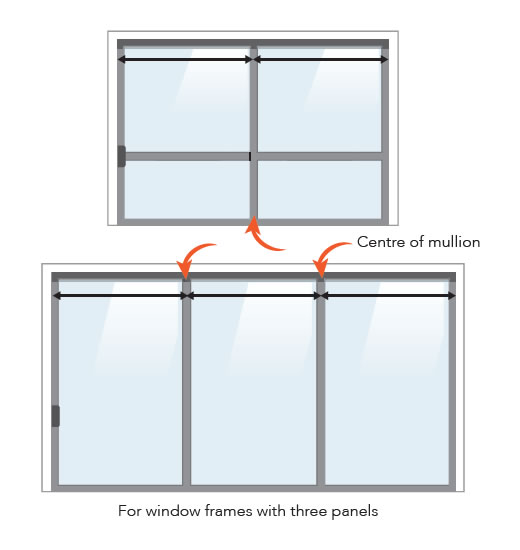 - Or, for window frames with three panels – measure one section at a time to the centre of each mullion. The sum of the three must equal the full width.