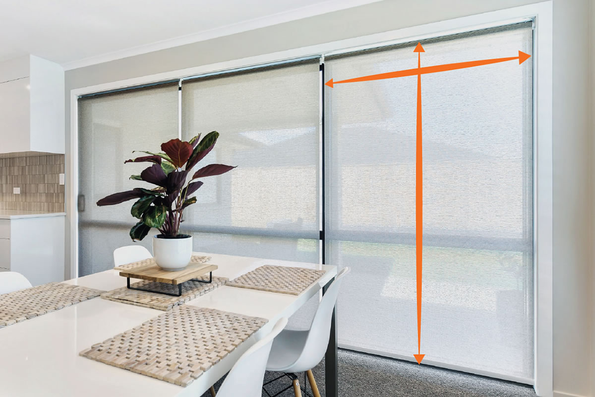- Back roll (commonly outside mount onto the architrave or wall) roller blinds – these lower over your window frame. You need to measure from the outside edge of the window architrave to the other end.
