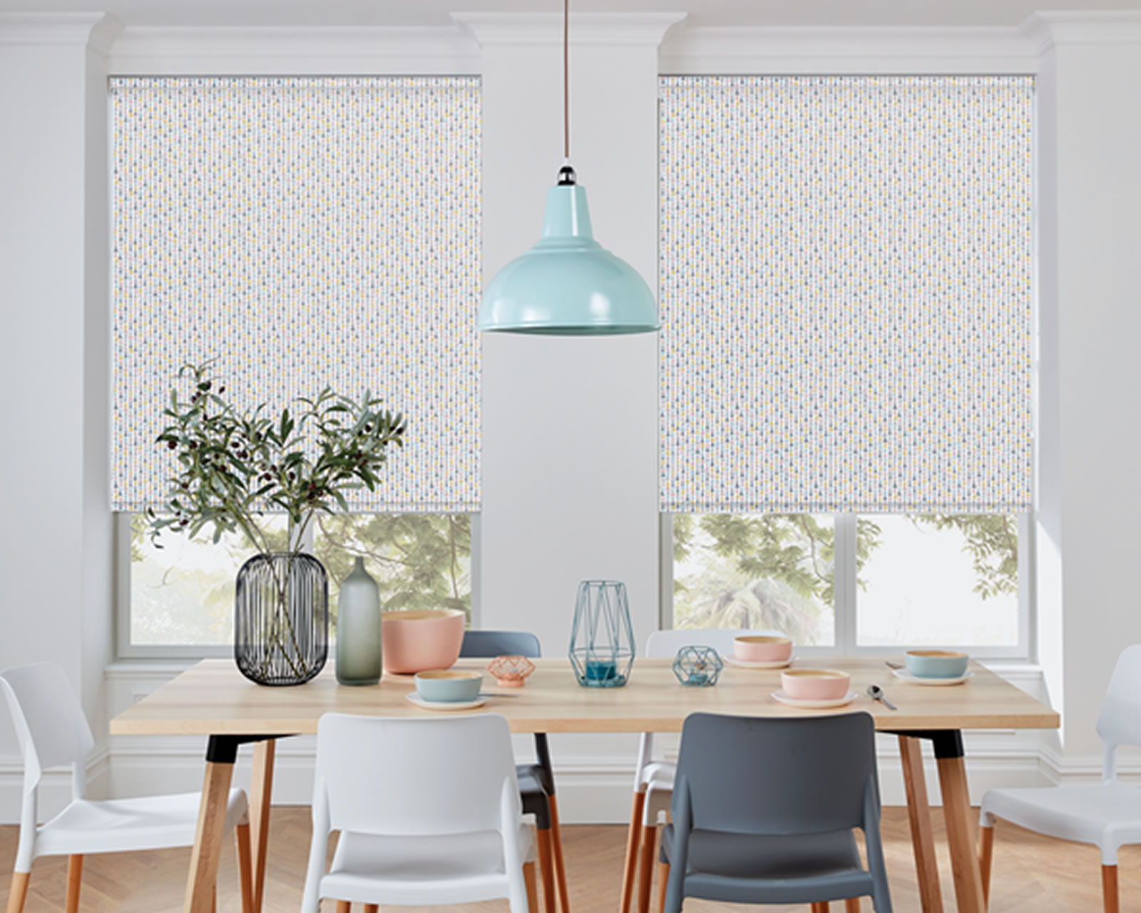 Bright and bold fabric colours are an easy way to lift your mood when the weather is wild outside. Especially if you bring in the tropics with lush botanical prints from our Impressions roller blind range. You’ll also find delicate blossoms, lush autumnal scenes and other fashion-forward patterns.